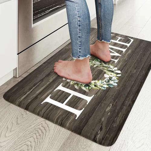 KIMODE - Alfombra de cocina antifatiga para el piso, de 17.3 x 29 pulgadas, alfombra de cocina de estilo rústico, antideslizante, acolchada y