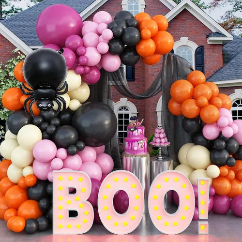 Kit de guirnalda de globos de Halloween, kit de arco de globos de Halloween negro, naranja, rosa, con globo amarillo pastel, araña, fantasma,