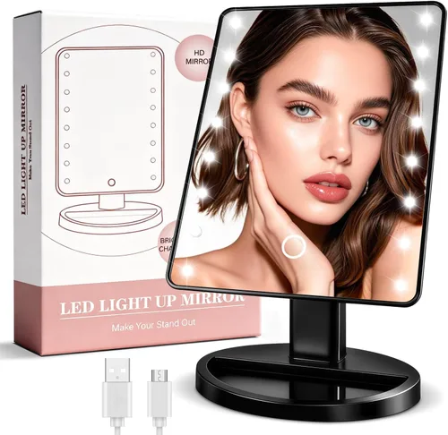 ESPEJO DE TOCADOR ILUMINADO PARA MAQUILLAJE - Las luces LED naturales proporcionan una vista clara para el maquillaje, adecuado para el cuidado diario de la piel, maquillaje, maquillaje cosmético, afeitado de hombres, etc Inteligente al brillo ajustable: el espejo de maquillaje con luces es regulable, toca el sensor frontal para encender/apagar la luz, presiona durante mucho tiempo para atenuar la luz. Cuenta con una función de memoria de brillo que conserva el ajuste de brillo desde el último uso 180 GRADOS DE ROTACIÓN - El espejo de tocador iluminado con luces se puede ajustar y fijar libremente, lo que te brinda el mejor y más cómodo ángulo de visión SUMINISTRO DE ENERGÍA DOBLE - Fuente de alimentación dual USB y 4 pilas AA. (Cable USB incluido, batería no incluida). El espejo de maquillaje iluminado no puede almacenar energía en sí mismo, por favor mantén el USB conectado o inserta las pilas para usarlo Hermosa decoración de habitación y opción de regalo. Este espejo de maquillaje de tocador no solo es el mejor regalo para la novia, la esposa, la novia adolescente, el cumpleaños de un niño, el cumpleaños de la madre, San Valentín, el Día de la Madre, Navidad y el Día de Acción de Gracias, sino también una decoración del hogar para regalos de aniversario familiar Este espejo de viaje con luces mide 10.5 pulgadas de alto y 6.7 pulgadas de ancho después de la instalación, compacto y ligero, portabilidad para aseo de viajes. Es un espejo 1x sin aumento