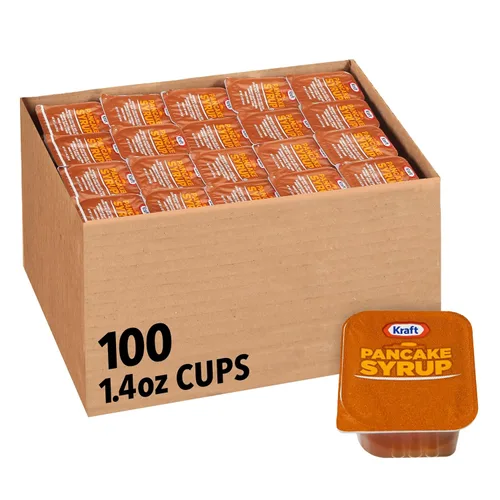 Añade el dulce sabor a arce del jarabe de panqueques Kraft a cualquier desayuno favorito Las tazas de jarabe Sngle ofrecen a los invitados control sobre cuánto sabor les gustaría agregar a su comida Fabricado con sabores naturales y artificiales Perfecto para servir con una amplia variedad de cocinas de desayuno y brunch Ideal para mojar o cubrir panqueques, gofres, tostadas francesas y otros platos de desayuno