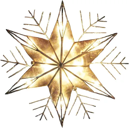 Este Kurt Adler 10 copos de nieve ligeros de 10 pulgadas Capiz y alambre con purpurina es una adición divertida y festiva a la decoración de tu árbol de Navidad. El interior de la copa del árbol brilla intensamente y se extiende en ramas brillantes de copo de nieve creando una combinación de estrella y copo de nieve. Esta copa de árbol incluye 4 bombillas de repuesto y 2 fusibles de repuesto.