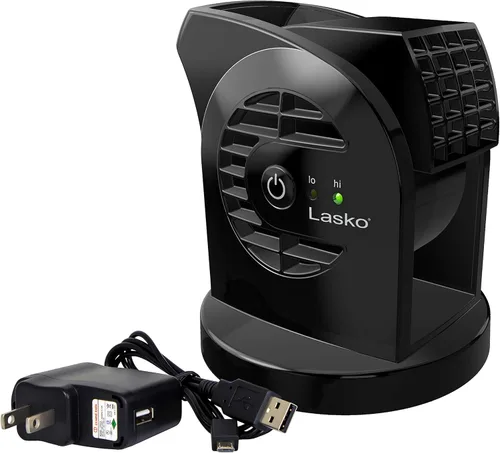 Lasko El mini ventilador MyCool se conecta directamente a una computadora y viene con un enchufe de pared adaptador de CA, por lo que es conveniente para alimentar sin importar dónde lo necesites. El cabezal del ventilador giratorio significa que puedes apuntarlo más alto cuando estás trabajando en tu escritorio de pie o más abajo para dirigir el flujo de aire en la cama desde una mesita de noche. Este ventilador compacto es perfecto para viajar porque es ligero, pequeño y versátil. Cuenta con 2 velocidades silenciosas y un asa de transporte integrada.