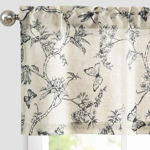 Lazzzy - Cenefa de cocina negra con flores, cenefa de lino estilo casa de campo para sala de estar, baño, dormitorio, cenefas estilo country,