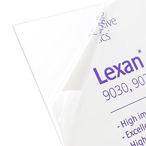 Película protetiva transparente en **AMBOS** lados de la hoja. Un lado tiene impresión. El otro lado es transparente/esmerilado y difícil de ver. Lexan es uno de los fabricantes del tipo material Ploycarbonate Resistencia a la temperatura alta/baja Termoconformable Nombres de marca para Polycabonate: Lexan, Perspex, Makrolon, Tuffak, Spartech