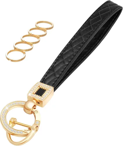 Llavero de cuero de microfibra, llavero de muñeca con 5 llaveros y anillo en D antipérdida