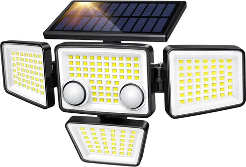 Luces solares para exteriores – 3000 lm, 188 luces LED con sensor de movimiento, 4 cabezales IP65, luces de inundación de seguridad alimentadas a