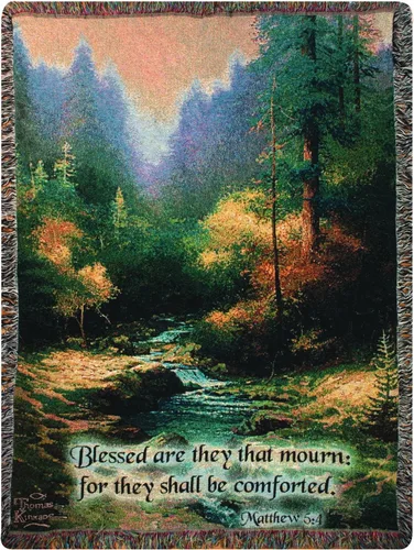 algodón Manta de tapiz con flecos con temática inspiradora Tamaño generoso: 50 x 60 pulgadas; cubre una cama, colócala sobre un sofá o adorna una cómoda silla Escena de la naturaleza de Thomas Kinkade con cita de Mateo: Bienaventurados los que lloran, porque serán consolados Fabricado en Estados Unidos Busca los carpinteros manuales para encontrar almohadas a juego y otros artículos de decoración