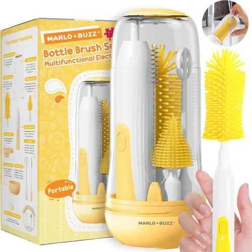 Marlo & Buzz Juego de limpiador eléctrico de cepillos para biberones, cepillos de silicona impermeables recargables con cepillo para biberón grande,