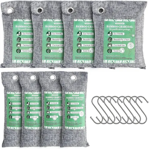 Carbón de bambú de alta calidad: nuestras bolsas de carbón activado están hechas de carbón de bambú activado de alta calidad con una alta superficie específica para absorber olores y humedad. Sin fragancia y sin químicos, absorben los malos olores en lugar de enmascararlos para mantener tu espacio fresco. Tamaños prácticos con ganchos: el kit incluye dos tamaños de bolsas purificadoras de aire de carbón activado natural con 8 ganchos, lo que las hace fáciles de colocar donde aparezcan olores e ideales para refrescar tu hogar. Reutilizables y duraderas: estas bolsas de carbón están recubiertas de tela de lino natural transpirable y duradera para una circulación óptima del aire. Absorben eficazmente los olores hasta por 2 años. Simplemente colócalos bajo la luz solar directa durante 2 horas una vez al mes para reactivar y restaurar su frescura, asegurando un rendimiento duradero. Uso versátil: nuestro absorbente de olores de carbón está diseñado con un fuerte poder de adsorción. Para obtener los mejores resultados, coloque varias bolsas alrededor de la habitación para maximizar el rango de purificación. En espacios pequeños y cerrados como zapatos, armarios, automóviles o camas para mascotas, funcionan especialmente bien. 【Atención al cliente】Si tienes algún problema, no dudes en ponerte en contacto con nosotros. Responderemos a su mensaje lo antes posible.