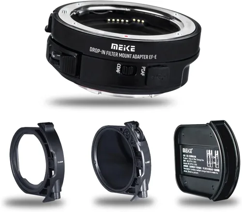 Meike MK-EFTE-C VND - Adaptador de lente de montaje automático de metal con ND variable desplegable y filtro UV transparente convertidor para lentes