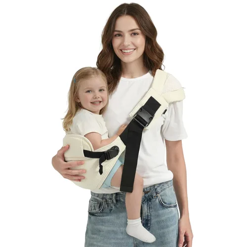 MISSWISDOM Portabebés para niños pequeños, portabebés de cadera con respaldo, portabebés ligeros para viajes, beige
