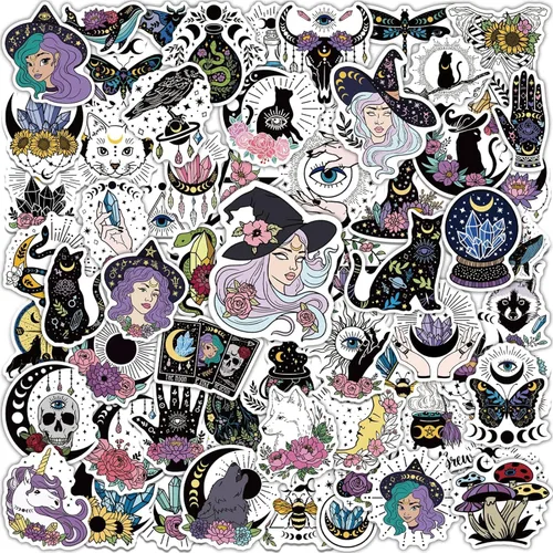 Adhesivos de bruja: Adhesivos con temática mística y celestial que presentan hermosas brujas, cartas de tarot, lunas, hongos, flores, polillas, bolas de cristal, frascos, calaveras, abejas, cristales, calderos, serpientes, mirlos y cualquier otra cosa que evoque una sensación brujera Tamaño de la pegatina: Estas pegatinas de vinilo brillantes y troqueladas miden 3.15 pulgadas (8 cm) en su lado más largo. Este tamaño es óptimo para laptops, Kindles, hydro flasks, notebooks, tarjetas de felicitación y paquetes de regalo Material premium: nuestras calcomanías mágicas están impresas en vinilo de alta calidad, y la tinta premium produce colores vibrantes. Además, estos adhesivos decorativos de bruja son impermeables, altamente duraderos, se adhieren fácilmente a la mayoría de las superficies y son de larga duración sin decoloración Amplio uso: Aunque nuestras calcomanías estéticas ofrecen protección impermeable y contra el sol, son perfectas para añadir un toque de magia a Kindles, botellas de agua, termos de agua, portátiles, iPads, cuadernos, cajas de herramientas, guitarras, equipajes, coches, o casi cualquier lugar que tu imaginación te lleve Regalo espiritual: estas calcomanías de brujería son perfectas para cualquier ocasión, como cumpleaños, Halloween, Acción de Gracias, Navidad Estos paquetes de calcomanías misteriosas son un regalo ideal o recuerdos de fiesta para la persona bruja en tu vida, proporcionando una manera divertida y creativa de darte un capricho a ti mismo o a los demás