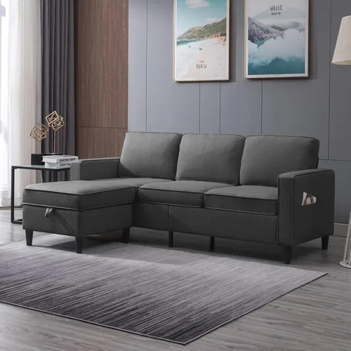 Mjkone Sofá modular para sala de estar | Sofá convertible de 3 plazas con 2 bolsillos laterales | Sofá modular moderno con otomana de almacenamiento