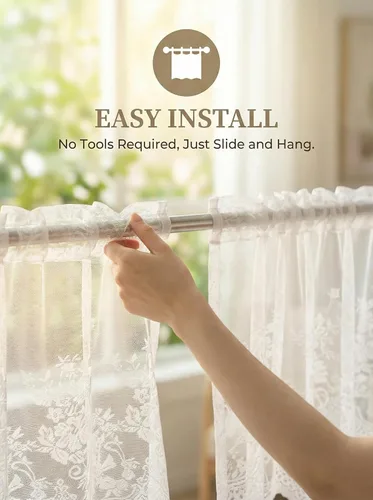 Pregunta sugerida sobre Molaxhome Cenefas de encaje blanco para ventanas de 51 x 16 pulgadas, cortina semitransparente bordada floral de encaje para cocina, cafetería ¿Este producto sí me sirve para lo que necesito?