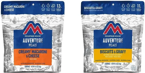 ¿Para qué sirve Mountain House Macarrones cremosos y queso (2 porciones) y galletas y salsa (2 porciones) Paquete de alimentos liofilizados para mochileros?