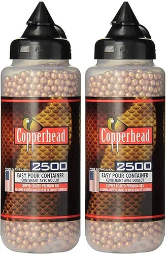 El tiro básico para plinking o competencia. Los BBs COPPERHEAD de Crosman son los más redondos del mundo para una máxima precisión de BB; recubierto de cobre. 2500 unidades de calibre .177 BBs empaquetadas en cargador rápido de plástico. El embalaje puede variar