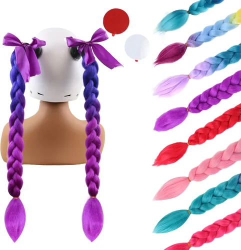 Negro Morado 2 Pzas Coleta de Casco con Ventosa Desmontable Coleta de Casco de Motocicleta Trenzas de Casco de Bicicleta Colas de Cabello para