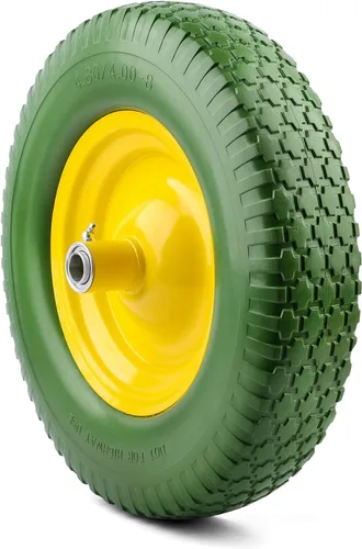 Reemplazo universal de 4.80/4.00-8 pulgadas juego de neumáticos y ruedas planas: se adapta a equipos utilitarios que utilizan neumáticos y tubos interiores que tienen un diámetro exterior de 15.7 pulgadas y un ancho de 3.75 pulgadas. Para un ajuste adecuado, el equipo de utilidad también debe ser compatible con llantas de aproximadamente 8.75 pulgadas de diámetro, un cubo centrado de 4 pulgadas y bujes de 5/8 pulgadas o 3/4. Altamente compatible con ruedas y remolques de utilidad: estos conjuntos de neumáticos y ruedas son altamente compatibles con una amplia variedad de equipos de utilidad, incluyendo camiones de mano (carretillas), carros, carritos de jardín y remolques, carretillas, carros, carros de lavado a presión y carritos de compresor de aire, y mucho más Neumáticos con tubo para aplicaciones ligeras a resistentes: nada puede superar la sensación y el fácil manejo que viene con neumáticos Flat Free. Estos conjuntos de neumáticos y ruedas vienen con servicio no en carretera (NHS con una capacidad de carga máxima de alrededor de 600 libras, estos neumáticos son más que capaces de manejar tareas de transporte a nivel comercial. Instalación rápida y fácil: no hay necesidad de llevar tu equipo de utilidad a las tiendas para un cambio de neumáticos. Este juego de neumáticos y ruedas viene premontado en una llanta de acero sólido. Todo lo que se requiere es que instale el conjunto de la rueda en su equipo de utilidad y está listo para comenzar. Tenga en cuenta, aunque es posible que la instalación no sea tan fácil en diferentes marcas y tipos de equipos de utilidad. Garantía limitada de 10 años: solo neumático en Amazon con garantía de 10 años.