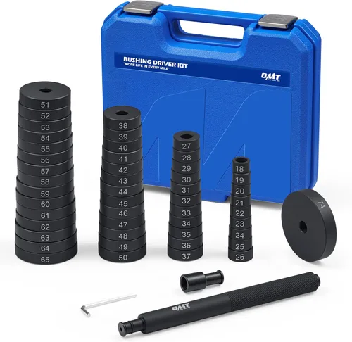 DIMENSIONES UNIVERSALES: Este kit de herramientas de extracción de bujes Orion Motor Tech incluye 50 discos intercambiables para construir 2,450 variaciones personalizadas de desarmadores de bujes para que siempre tengas el tamaño correcto para el trabajo. CONJUNTO COMPLETO: Los tamaños de los discos van desde 18 mm (0.7 pulgadas) hasta 65 mm (2.51 pulgadas) en incrementos de 1 mm más 74 mm (2.91 pulgadas). Todos los discos están conectados con un eje de 12 mm (0,47 pulgadas) y un tornillo que se conecta rápidamente a un mango de 180 mm (7,08 pulgadas), lo que hace que sea un juego completo y eficaz de desarmadores de rodamiento de rueda. OPERACIÓN FÁCIL: Este kit de herramientas automotrices incluye un eje de mango largo para simplificar el reemplazo del rodamiento y el sello y ayudarle a quitar o instalar rodamientos de rueda de manera rápida y profesional. DURABILIDAD DE ALTA CAPACIDAD: Con construcción ultrarresistente de acero al carbono y revestimiento de oxidación anódica negra para resistencia al óxido, este juego de herramientas mecánicas soportará años de uso intensivo. Estuche protector de transporte: incluye un estuche resistente moldeado por soplado con compartimentos de tamaño preciso para cada pieza, ideal para almacenamiento y transporte mientras prolonga la vida útil del juego de herramientas.