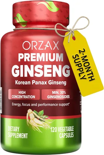ORZAX Cápsulas coreanas de Panax Ginseng con 30% de ginsenósidos para rendimiento y suplementos energéticos para mujeres y hombres, ginseng rojo