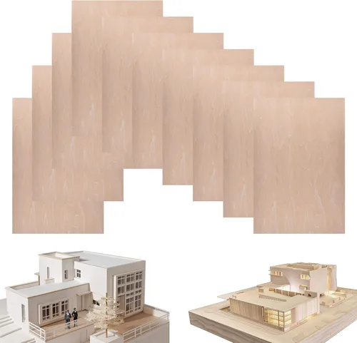 Hecho de tilo de alta calidad, color natural, sin terminar y sin pintar Tamaño: Rectángulo 1/16 × 8 × 12 pulgadas Adecuado para corte láser y manual, fácil de usar Bueno para modelo arquitectónico, modelo de mini casa, pintura de madera y proyectos de combustión, y otras manualidades de bricolaje El paquete contiene 10 hojas de tilo