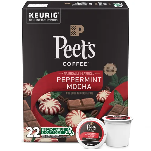 Peet's Coffee, Flavored Coffee K-Cup Pods for Keurig Brewers - Peppermint Mocha 22 Count (1 Box of 22 K-Cup Pods)