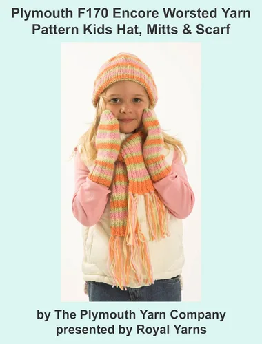 Plymouth F170 Encore Worsted Yarn Pattern Kids Hat, Mitts & Scarf (I Want To Knit)