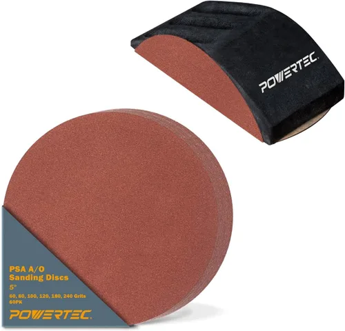 Discos para Lijar de la marca POWERTEC con 5" Sanding Block + PSA Sanidng Disc