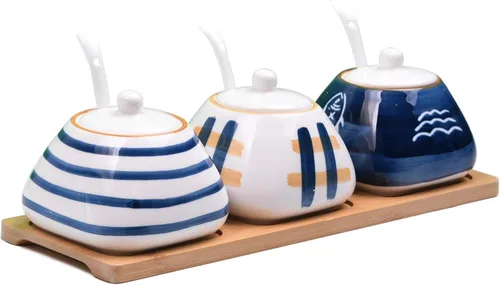 Los frascos de cerámica son productos frágiles. Si hay algún daño durante el transporte, ponte en contacto con nosotros a tiempo a través de Amazon. Le reemplazaremos con nuevos productos de forma gratuita sin demorar su uso. Los productos incluyen: Tarro de cerámica 3 cubierta de cerámica 3 Cuchara de cerámica 1Bandeja de bambú Cada recipiente de condimento tiene una gran capacidad de 10.1 fl oz (10. 6 onzas), lo que es muy útil y llamativo. El kit tiene una hermosa bandeja para 3 frascos, manteniendo tu cocina lejos del caos y ordenada. Es fácil de limpiar, ahorra espacio y se adapta a cualquier entorno. Brindamos un servicio de calidad a cada cliente.