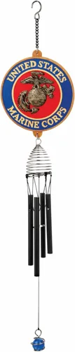Apoya a los marines: la campanilla de viento está adornada con un emblema de los marines de doble cara, campanas de aluminio y un peso de mármol de vidrio Dimensiones: mide 21 pulgadas de largo; incluye gancho en S para colgar fácilmente; resistente a la intemperie para uso durante todo el año Con licencia oficial: la campana de viento cuenta con el sello del Cuerpo de Marines de los Estados Unidos; el Cuerpo de Marines recibe una parte de los ingresos de las ventas de productos con licencia. Regalos para miembros del servicio: un regalo significativo para miembros del servicio, veteranos y familias militares en cualquier época del año