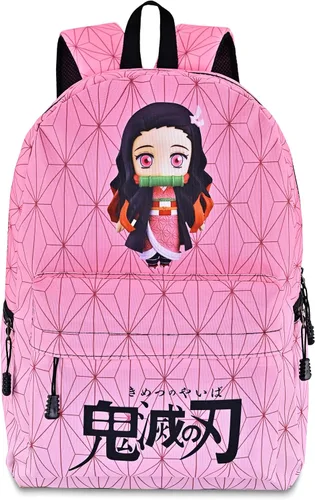 Material: tela Oxford resistente al agua y duradera. Tamaño: 11.8 x 5.1 x 17.3 pulgadas de alto. Diseño: Compartimento principal con cierre de doble cremallera, con la impresión de elemento Demon Slayer, correas acolchadas y ajustables. Bolsillos externos: 1 bolsillo con cremallera, 2 bolsillos laterales con cremallera. Bolsillos internos: 1 pequeño bolsillo con cremallera y compartimento acolchado para portátil con espacio para acomodar una computadora portátil de 15 pulgadas. Tema: El rosa es el patrón del tema de Kamado Nezuko en Demon Slayer. Es un regalo perfecto para los fanáticos del anime.