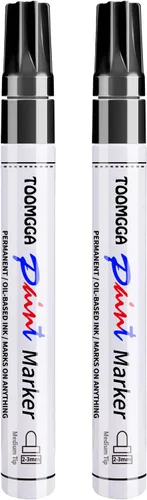 TOOMGGA Rotuladores permanentes de pintura negra, paquete de 2 rotuladores a base de aceite, punta media, secado rápido e impermeables para pintura