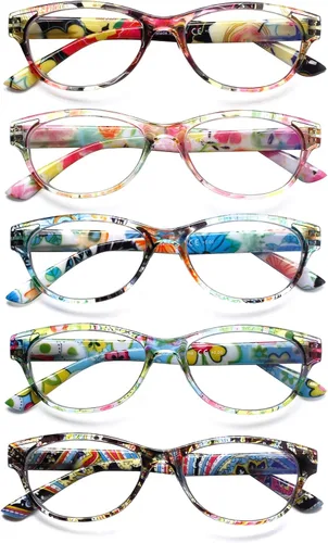 SIGVAN 5 pares de lentes de lectura con diseño de ojo de gato para mujer, con bloqueo de luz azul, bisagra de resorte, estampado de moda para mujer