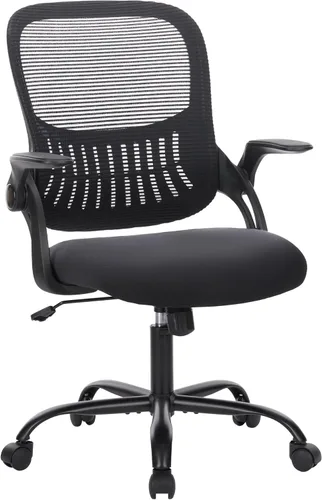 Silla de computadora de escritorio de oficina, sillas ergonómicas giratorias de malla con respaldo medio con ruedas, cómodo soporte lumbar, cómodos brazos abatibles para el hogar, estudio, juegos, estudio, estudiante, negro