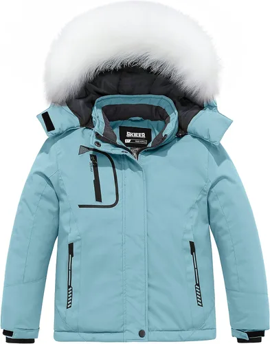 Skieer Chaqueta de esquí impermeable para niña, chaqueta de invierno a prueba de viento, abrigo de lluvia con capucha