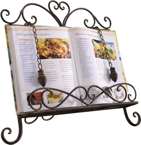 Soporte de metal antiguo para libros de cocina, libro de recetas y soporte para iPad, caballete de libro de cocina con cadenas pesadas para regalo