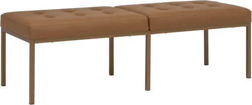 Banco de interior con acento de cambera: este banco de cuero capitoné de 60 pulgadas añade un toque moderno a cualquier oficina u hogar y es perfecto para el dormitorio, muebles de entrada o muebles de oficina Diseño de apoyo y elegante: con patas de color bronce y tapicería de cuero capitoné, este banco ofrece durabilidad y sofisticación al diseño de muebles de oficina o hogar Cómodo banco de asientos de cuero: este mueble moderno de mediados de siglo proporciona asientos cómodos para varias personas, por lo que es ideal para un banco de comedor de cuero, muebles de sala de espera o un banco de entrada estrecho Patas de banco de bronce duraderas: las patas de banco de acero de color bronce ayudan a garantizar que el banco no se afloje ni se rompa con el tiempo; cuenta con patas de plástico en las patas para evitar rasguños; límite de peso: 250 libras Perfecto para cualquier habitación: ideal para añadir un toque de moda a una variedad de espacios; utiliza nuestro banco de acento como banco de sala de espera, banco al final de la cama, asiento de banco de pasillo o mueble de sala de estar de diseño; las dimensiones totales son 60.5 pulgadas de ancho x 21.5 pulgadas de profundidad x 18.75 pulgadas de alto