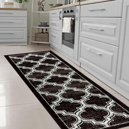 • Duradero, suave y afelpado. Tejido y fabricado con fibras de polipropileno 100% de la más alta calidad para alfombras de alta calidad que son suaves y afelpadas pero soportan un alto tráfico. Estas alfombras familiares son fáciles de limpiar, lo que las hace perfectas para zonas de alto tráfico y propensas a derrames, incluyendo comedores, habitaciones familiares, pasillos, vestíbulos, salas de juegos y dormitorios de los niños Favorito del diseñador. Disfruta de esta acogedora alfombra e impresiona a tus invitados con su clásico patrón de enrejado con bordes en tonos marfil y gris claro sobre un fondo negro sutilmente envejecido. Esta elegante alfombra inspirada en celosía está disponible en corredores de 2 x 3 pies, 2 pies 7 pulgadas x 8 pulgadas, 4 x 6 pies, 5 x 8 pies y 8 x 10 pies para adaptarse a cualquier espacio de tu hogar. La altura del pelo de 0.315 in o 0.31 pulgadas encuentra el equilibrio perfecto entre felpa cómoda y fácil de limpiar Construcción fina. Bien hecho con respaldo de yute, se recomienda una almohadilla antideslizante debajo de la alfombra. Fácil cuidado: Aspirar regularmente para evitar que el polvo y las migas se adhieran a las fibras. Evite la exposición continua a la luz solar y gire de vez en cuando para igualar el desgaste. Use tijeras para quitar cualquier cabo suelto. Limpiar las manchas para obtener los mejores resultados