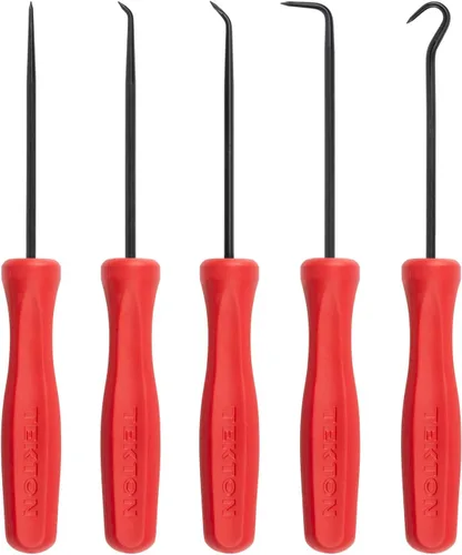 Incluye 4 piezas. púas: rectas, 45 grados, compuestas, 90 grados; gancho de 130 grados Lo mejor para aplicaciones de precisión: ideal para una amplia gama de otras aplicaciones mecánicas Punta afilada para un trabajo preciso: cada punta viene a un punto afilado de 30 grados para mantener la fuerza lo más cerca posible de la punta Resiste la torsión – Dos "alas" en la base del vástago ayudan a resistir ser torcido o sacado del mango Mango versátil: el clásico mango cuadrado es largo y delgado con lados contorneados para una versatilidad y maniobrabilidad general Fabricado en Michigan: la familia de púas, ganchos y mini barras de palanca de Tekton está fabricada completamente en Michigan con solo materiales de origen estadounidense