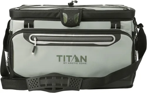 ENFRIADOR SIN CREMALLERA TITAN BY ARCTIC ZONE: El enfriador cuenta con una tapa sin cremallera patentada "abatible" para un acceso rápido a alimentos y bebidas; mantiene el hielo hasta tres días y tiene capacidad para hasta 48 latas AISLAMIENTO DE RENDIMIENTO DEEP FREEZE: Cuenta con aislamiento de rendimiento Deep Freeze con una barrera de calor radiante integrada; Perfecto para mantener alimentos y bebidas frías durante viajes, reuniones en el patio trasero, picnics y más FORRO HARDBODY CON SMARTSHELF: Incluye un forro HardBody extraíble con SmartShelf que te permite separar los artículos duros de los suaves para que los sándwiches y otros alimentos blandos no se aplasten; el SmartShelf se retira fácilmente para obtener espacio adicional FORRO INTERIOR ULTRA SEGURO A PRUEBA DE FUGAS: El forro interior es a prueba de fugas y tiene protección Microban DISEÑADO PARA LA CONVENIENCIA Y USABILIDAD: El enfriador cuenta con una correa de hombro ajustable Backsaver con almohadilla antideslizante para mayor comodidad, material exterior resistente es repelente al agua y a las manchas y fácil de limpiar