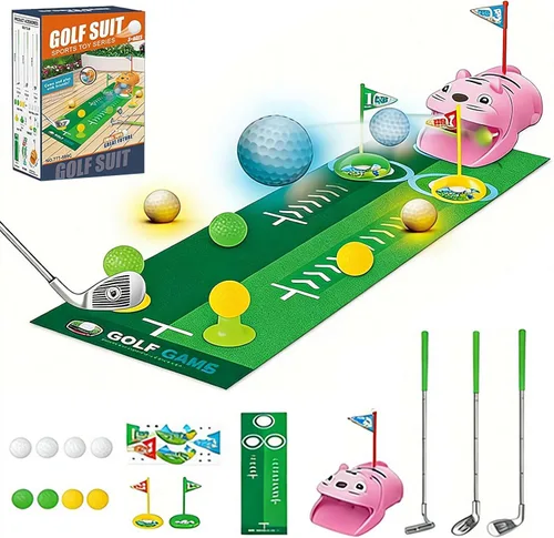 ¿Para qué sirve Upgraded Kids Toy Golf Set with Tiger Automatic Golf Returner, Led Light Up Golfballs, 3 Clubs, Putting Mat, 3-5 Toddler Mini Golfs Games, Indoor?