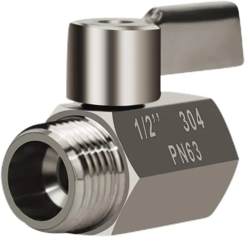 Válvula de cierre de cabezal de ducha con mango inoxidable, mini válvula de bola de acero inoxidable 304 (1/2 pulgada hembra X macho) rosca NPT,