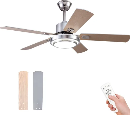 Boomjoy Ventiladores de techo de madera de 52 pulgadas con luces y control remoto para interiores y exteriores, moderno ventilador de techo plateado