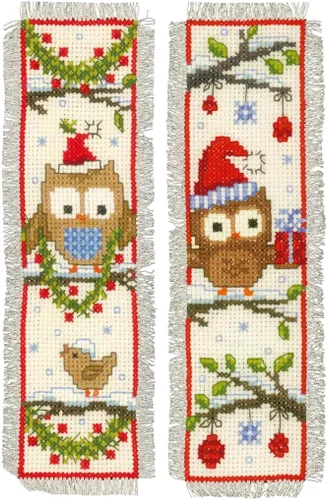 Vervaco Kit de marcapáginas de punto de cruz (juego de 2) búhos en sombreros de Santa 2.4 x 8 pulgadas