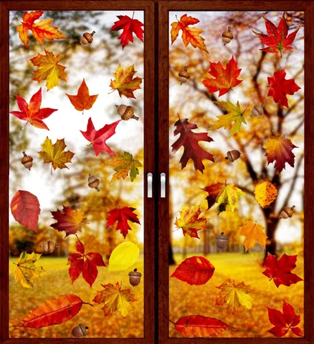 VEYLIN 6 hojas de 200 calcomanías estáticas para ventana de Acción de Gracias, hojas de arce otoñales, calcomanías estáticas para decoración de
