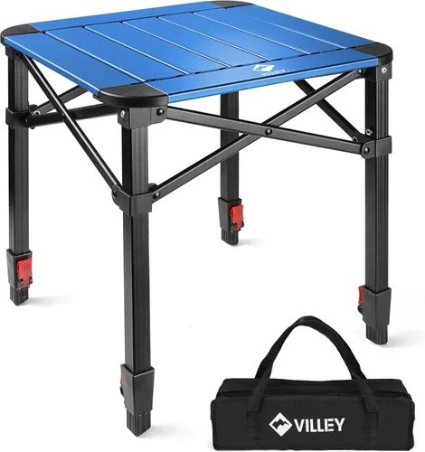 VILLEY Mesa cuadrada plegable para acampar con bolsa de transporte, mesa cuadrada ajustable de aluminio ligero para exteriores, camping, picnic,