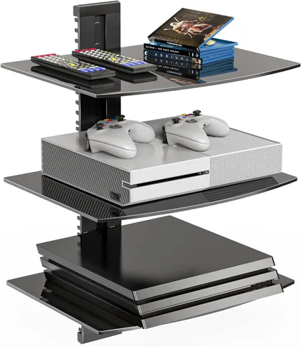 WALI Floating Shelf System The ultra-slim WALI wall mount has an all-black coating and adjustable shelf height to enhance the look of your entertainment system and free up floor space. Product Specifications: Maximum Support Weight 17.6lbs (8kg) on Each Shelf. Wall Plate: Made whit high-quality aluminum alloy material. With top and bottom plastic cover, the wall plate size is 8.66 x 3.12 x 0.75 inches (L x W x H). V-Shape Bracket: Made with high-quality steel. Three rubber mats on top to improve stability. Glass Shelf: Made with strengthened tempered glass with the black opaque coating. Size is 15” x 11” x 5mm (Width x Depth x Thickness). Can be mounted on any vertical wood studs, brick, or concrete wall (Do NOT mount on drywall alone). Cable management system to hide all the messy cables. Easy to adjustable, simply loosen the connecting piece to adjust the shelf height. Perfect for DVD/Blu-Ray Players, Satellite/Cable Boxes, Games Consoles, Hi-Fi and Surround Speakers. Package Included: WALI Floating Shelf System (Black) x 1 Strengthened Tempered Glass x 1 Mounting Hardware Kit x 1 User Manual x 1