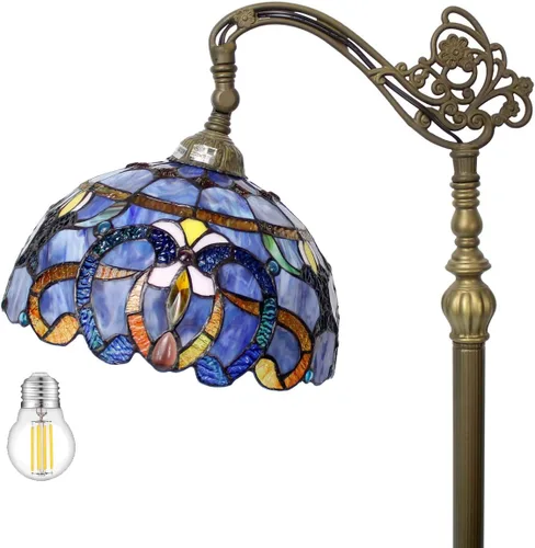 WERFACTORY Tiffany - Lámpara de pie con diseño de nube azul y morado, lámpara arqueada de 12 x 18 x 64 pulgadas, cuello de cisne ajustable, luz de