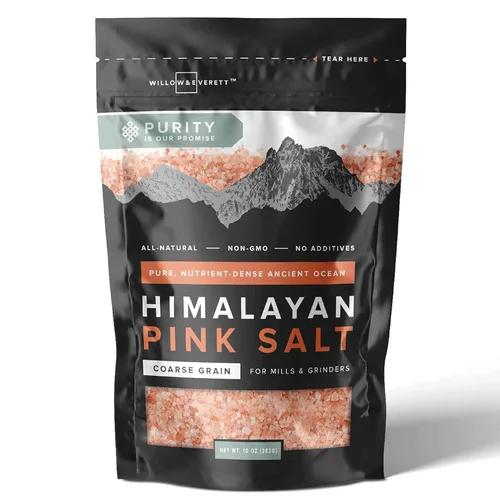 FRESCURA SELLADA: La bolsa resellable de rasgar aquí mantiene la pureza de la sal y previene la humedad - mantiene los cristales frescos y fluyendo libremente HIMALAYA DE GRANO GRUESO: Estos cristales de sal rosa pura extraídos de la antigua Mina de Sal de Khewra son perfectos para molinos de sal, molinillos, cerdos de sal y saleros. Son un excelente condimento por sí solos, y son perfectos para condimentos y adobos de especias. CALIDAD CERTIFICADA KOSHER: Sal de roca del Himalaya 100% natural, no transgénica, sin aditivos, con 84 oligoelementos para un sabor mejorado y bienestar. Tamaño perfecto de molinillo: Los grandes cristales de grano grueso están específicamente dimensionados para molinillos de sal. No se atascan ni se convierten en polvo como las alternativas de grano fino COLOR ROSA AUTÉNTICO: El contenido de hierro natural crea el hermoso tono rosa de la sal de roca del Himalaya. La formulación rica en nutrientes de esta antigua sal oceánica proviene de formaciones geológicas puras SABOR CON MENOS SODIO: Un sabor salado más fuerte y satisfactorio significa que usas menos mientras obtienes mejor sabor que la sal de mesa común DE LA COCINA A LA MESA: No solo es una sal de cocina premium, sino que también es una excelente sal de acabado para asar, sazonar y preparación de comidas gourmet, ideal para chefs y cocineros caseros USO DE BIENESTAR VERSÁTIL: Ideal para exfoliantes de sal, baños minerales, baños de pies y tratamientos de spa más allá de las aplicaciones culinarias BOQUILLA FÁCIL DE VERTER: Para el envase de 35 oz, Willow & Everett incorpora una innovadora boquilla de apertura giratoria y resellable para su Sal Rosa del Himalaya. Hace que las recargas de la amoladora sean sin derrames y convenientes: ¡no más derrames de sal desperdiciada! VALOR DE RECARGA A GRANEL: Tamaño de 10 oz perfecto para recargas de molinillo y buscadores de variedades, cantidad ideal para uso culinario y bienestar regular