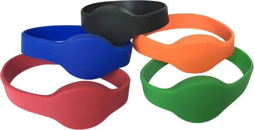 1. Chip EM4100. 2. Pulseras RFID. Material 3.silicone 4.125 khz. 5. Solo lectura 6. Diámetro: 2.559 in para adultos. 7.1pc para cada color.